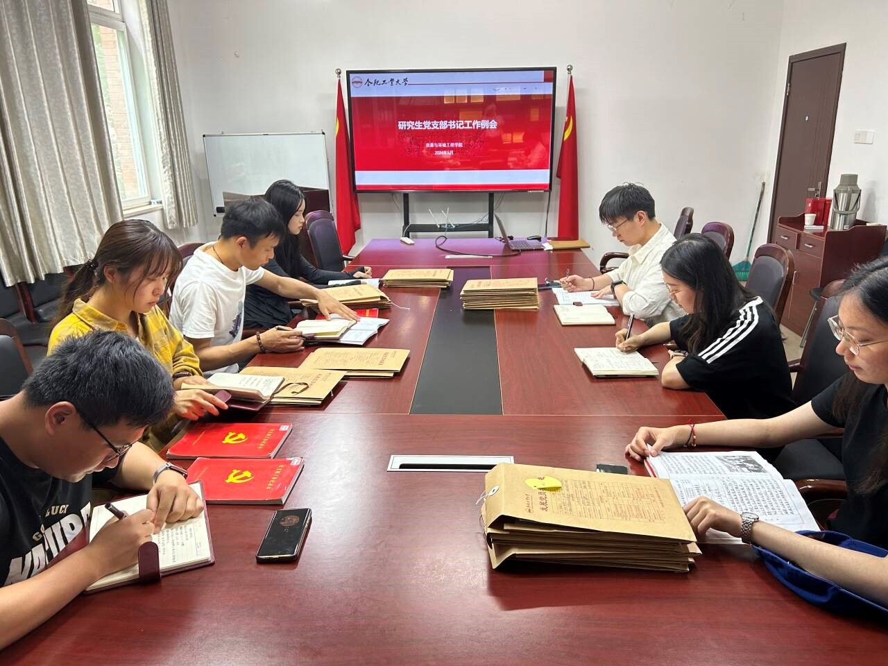 在西教学楼309会议室召开研究生党支部书记五月工作例会暨2024届毕业生党员组织关系转接培训会。研究生辅导员徐晨晨、研究生党支部书记及支委参加本次会议。