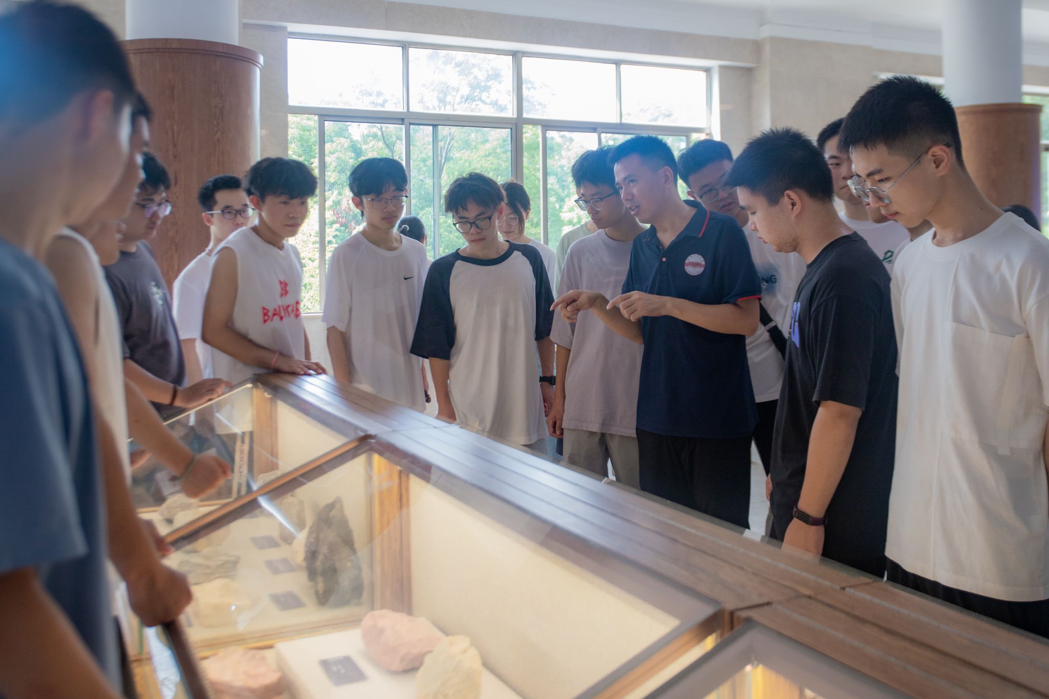 活动中,色播科普导师徐利强、沈岳峰老师为同学介绍了我校地质博物馆馆藏状况以及将专业教育第一课放在地质博物馆的重要意义。随后,新生们在两位老师的带领下,分别参观了位于主教学楼的史前生命厅、地球物质厅、地球厅。校地质博物馆通过岩石矿物标本、资料图片、文字讲解、模拟场景等方式,生动地向同学们展示了地球从诞生至今的生命演化过程与地质变迁、地质资源的分布埋藏状况、矿物科普知识等。活动最后,两位老师寄语同新生们要以此次活动为契机,明确专业学习规划,扎实学好专业知识,为地学学科与地质事业发展贡献青春力量。