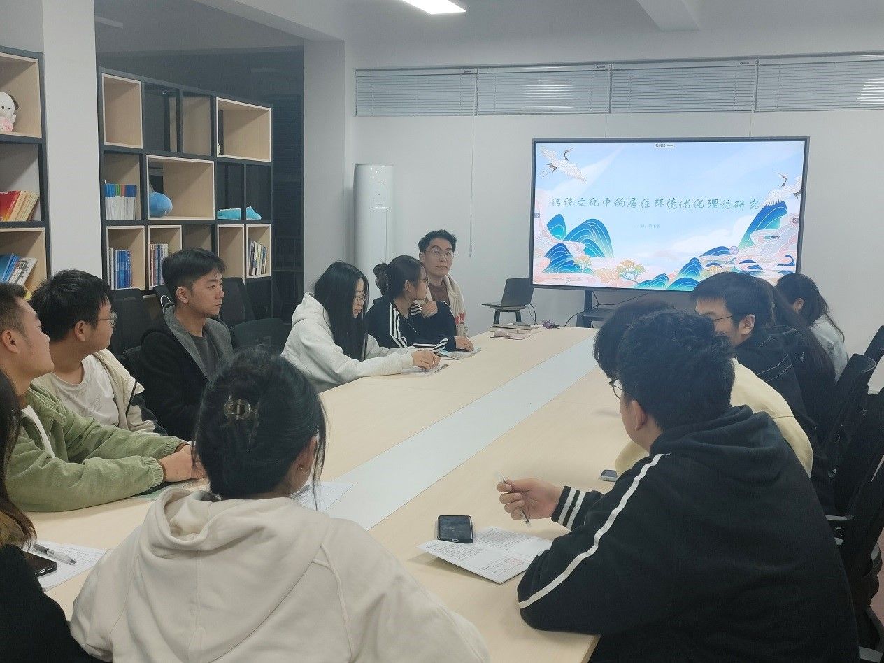 本次分享内容围绕传统文化中的居住环境优化理论研究,分为背景介绍、基本理论、实际应用、总结讨论四个部分。贾伟豪同学先简单地介绍了中华优秀传统文化历史渊源,以深入浅出的方式,为大家揭示了传统文化中蕴含的居住环境优化智慧。随后通过理论讲解,向同学们展示了传统文化理念融入现代居住环境的实际应用。最后互动环节,在场的同学们纷纷提出了自己居住环境优化中遇到的问题和困惑,贾伟豪同学则耐心解答,现场气氛热烈而融洽。通过交流分享,不仅加深了同学们对传统文化的理解,也激发了大家对于改善居住环境的思考和灵感。