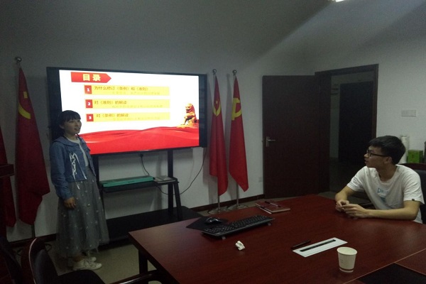 首先陈明珠同学重点带领我们认真阅读、学习、理解、领会《中国共产党廉洁自律准则》,深深地知道,党员干部要廉洁自律,是我们党历来坚守的铮铮誓言,而且早在党的七届二中全会上,毛泽东同志高瞻远瞩地提出了全党同志必须做好“两个务必”的著名论述,即“务必使同志们保持谦虚、谨慎、不骄、不躁的作风,务必使同志们保持艰苦朴素的作风。”并且带领我们了解实事,在深入贯彻十九大精神,全面实现中国梦的新形势下,习近平总书记号召全党,特别是领导干部要时刻保证党风廉洁自律的工作作风,加强廉政建设和反腐败工作,促进党员干部廉洁自律,深入开展反腐斗争具有十分重要的意义。